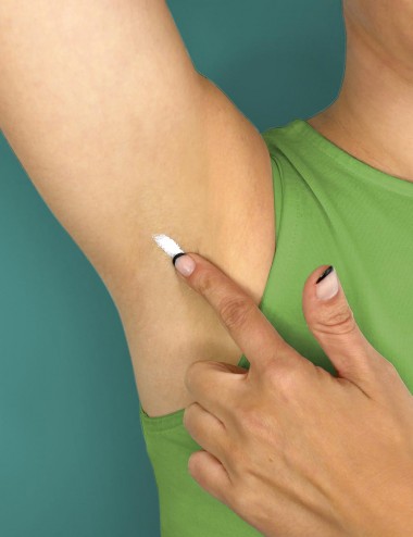 Wash and dry the area to be treated, then apply a pea-sized amount of product under each armpit. Using your fingers, gently spread on a thin layer to cover the skin.